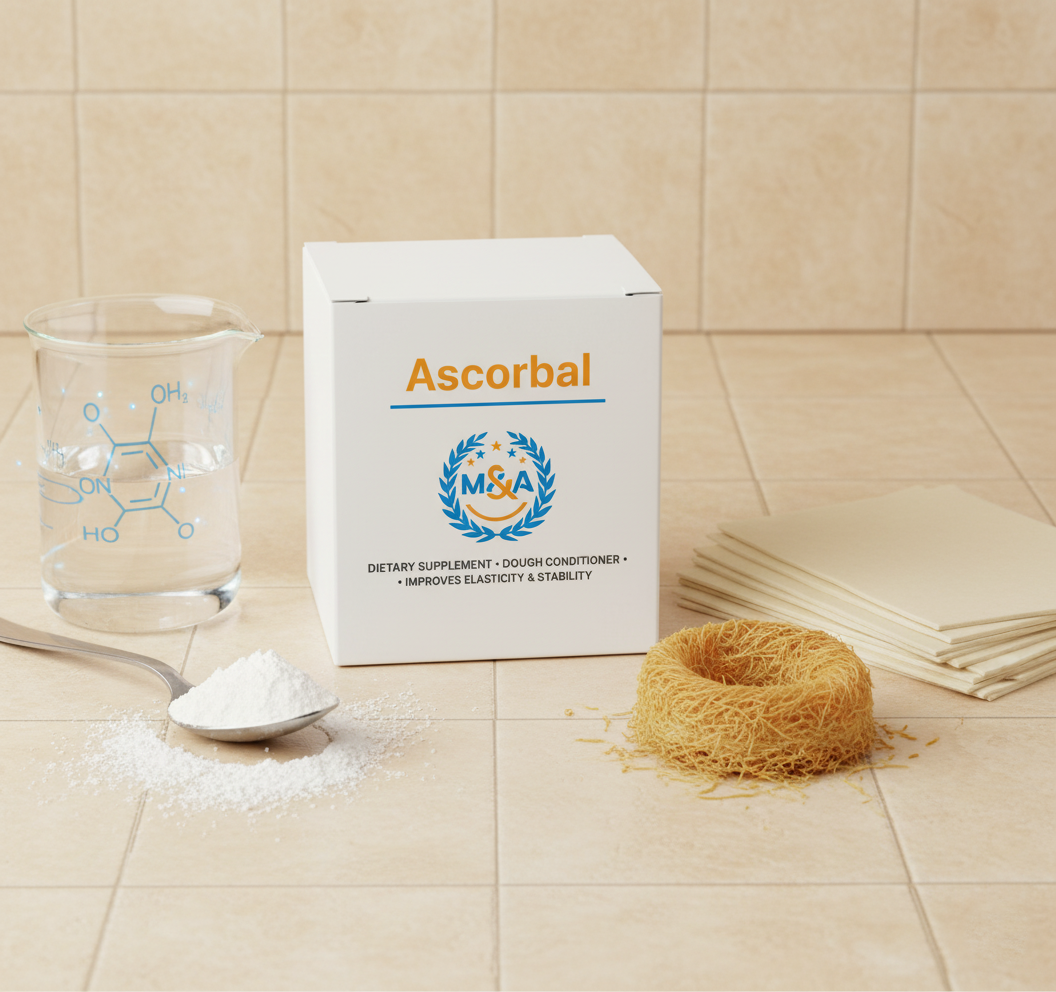 اسكوربال هو مركب يحتوي على مشتقات حمض الأسكوربك ويُستخدم لتحسين خصائص العجين وزيادة مرونته وثباته أثناء التصنيع.