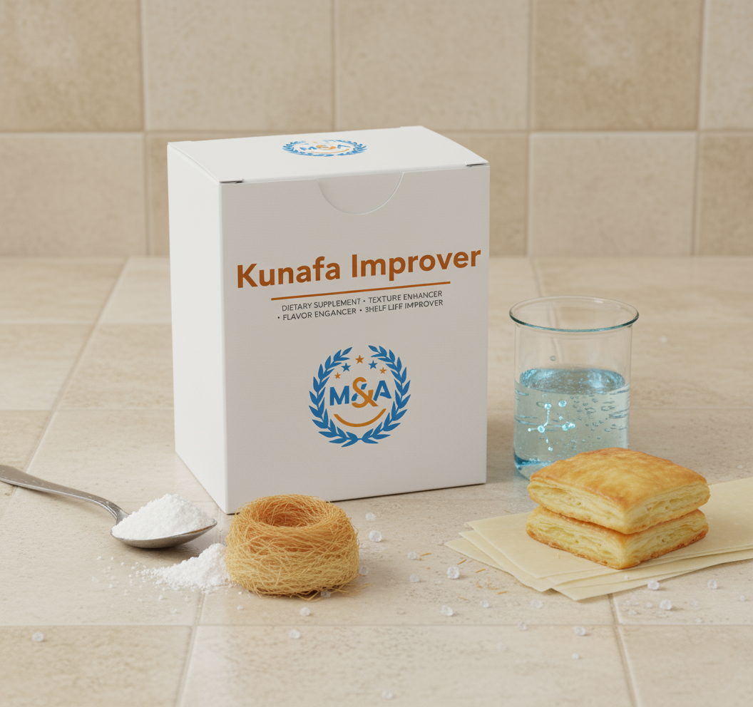 محسن الكنافة يُستخدم لتحسين قوام الكنافة ولونها وطراوتها، ويُساعد في الحصول على منتج نهائي عالي الجودة.
