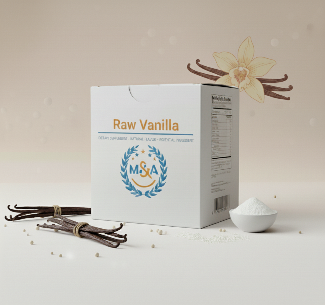 الفانيليا الخام تُستخدم في صناعة البسكويت والويفر لإضفاء نكهة مميزة وطبيعية، وتُعد من المكونات الأساسية في الحلويات.
