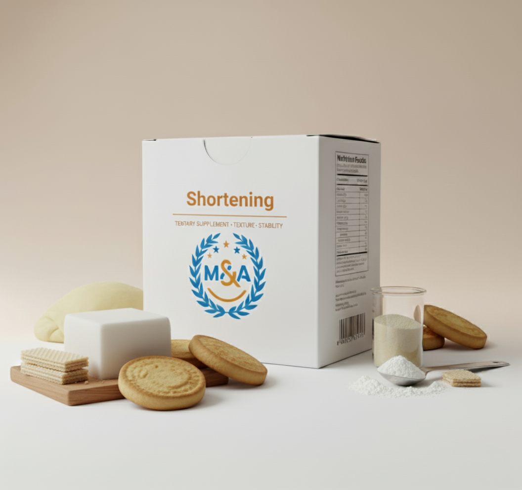 الشورتنج هو مادة دهنية تُستخدم في صناعة البسكويت والويفر لتحسين الطراوة والقوام، كما يُساهم في تحسين الطعم والثبات الحراري أثناء الخبز.