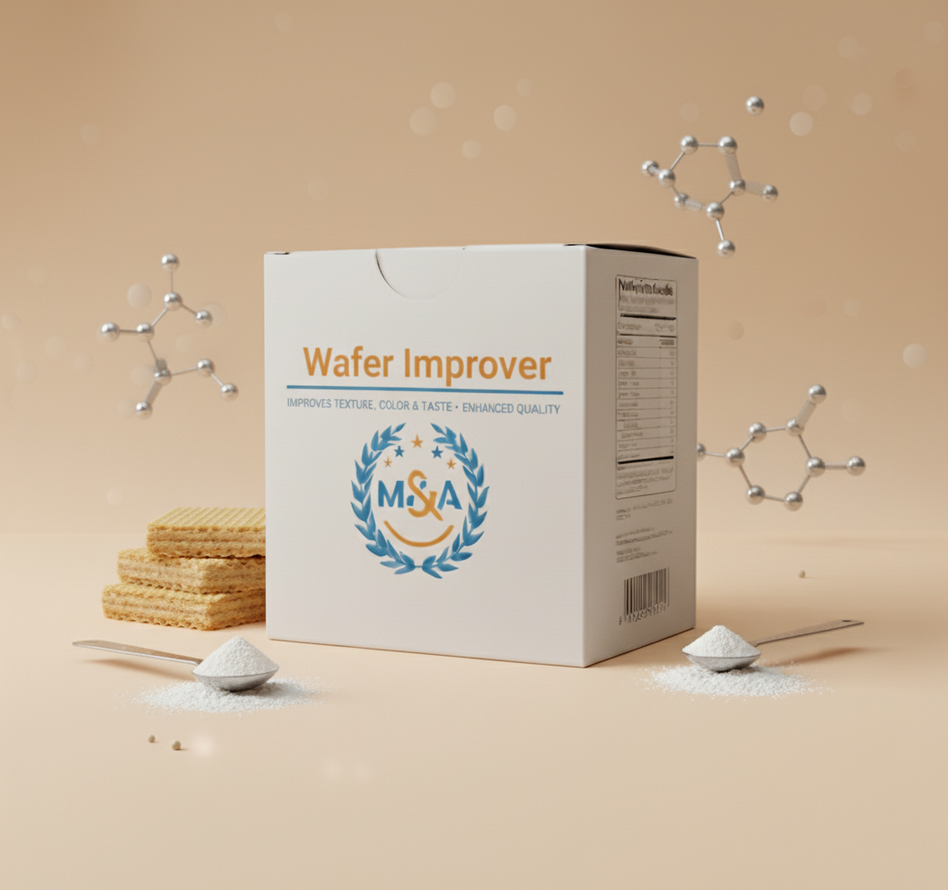 محسن بسكويت ويفر يُستخدم لتحسين القوام واللون والطعم في منتجات الوافر، ويُساهم في رفع جودة المنتج النهائي.