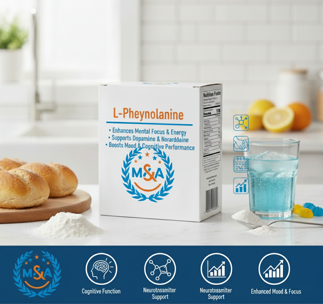 L‑Phenylalanine converts to tyrosine and then to dopamine and norepinephrine, fitting naturally into nootropic, mood‑support and EAA products that claim better mental clarity, motivation and training readiness
