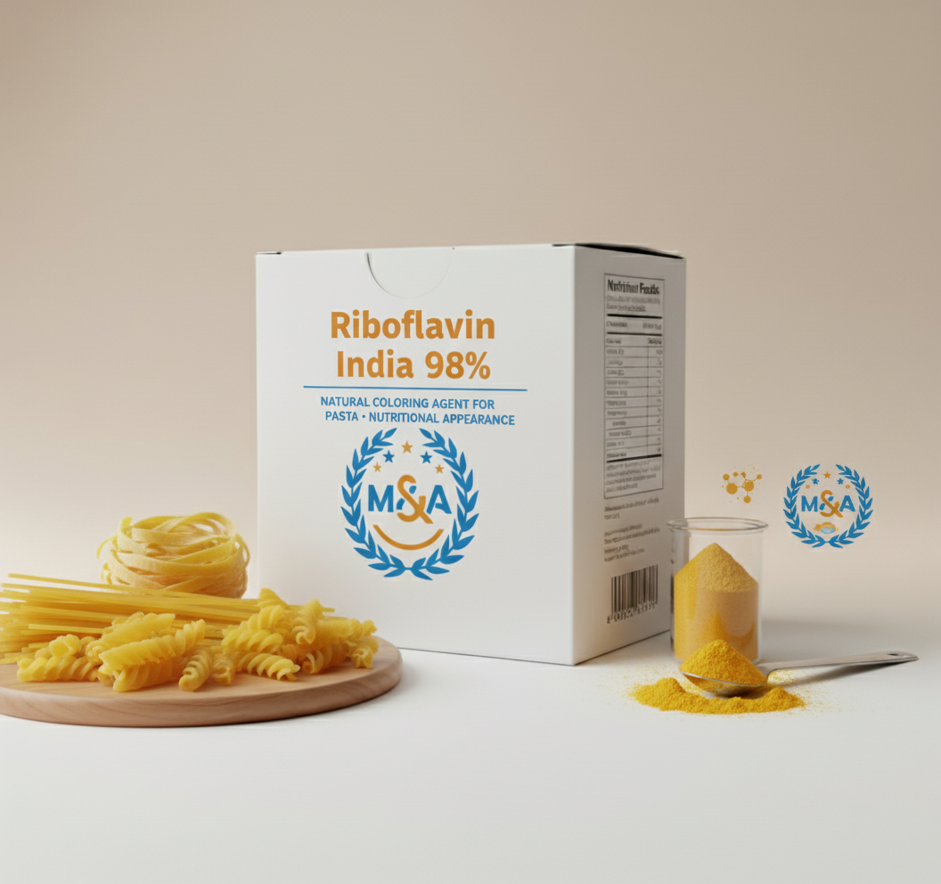 Riboflavin 98% is used as a natural colorant in pasta products and contributes to improving the nutritional profile of the product.